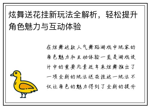 炫舞送花挂新玩法全解析,轻松提升角色魅力与互动体验