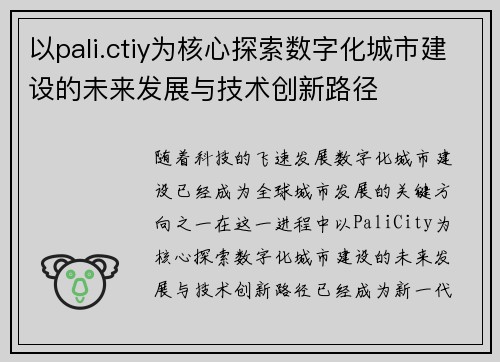 展望未来,数字化城市建设将在更广泛的领域中取得突破。从智慧交通到智能教育,从数字政务到绿色建筑,科技的进步将为城市带来更加高效、便捷和可持续的生活方式。随着Pali.City等数字化城市的不断发展与完善,全球范围内的数字化城市建设将迈向更加成熟、智能、绿色的新时代。